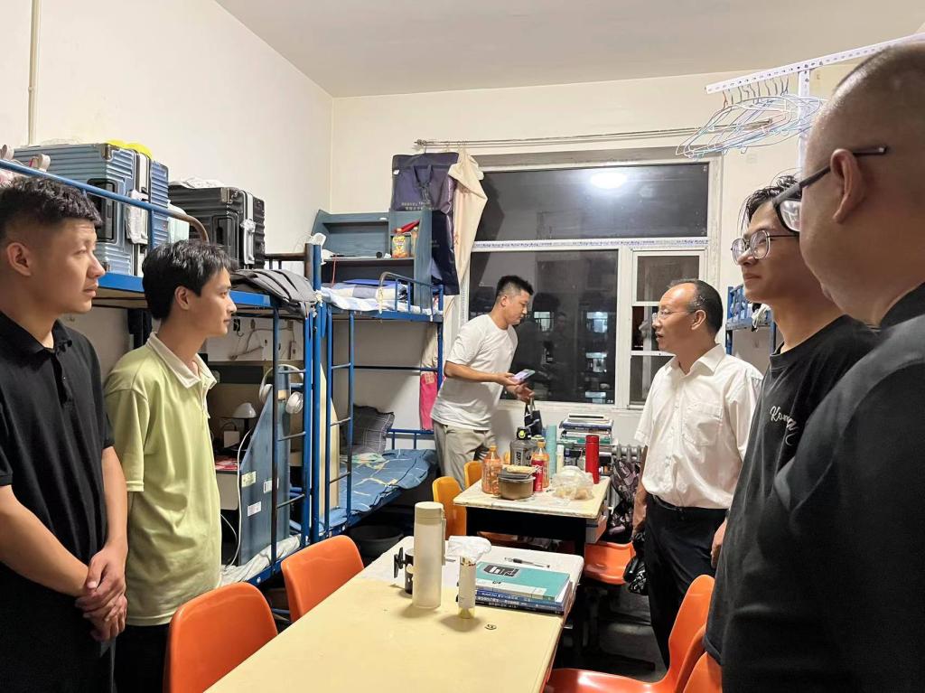 8月25日晚,智能制造学院党总支书记霍成义、副院长陈雨婕、副院长吴超带领辅导员和班主任队伍深入学生宿舍,走访看望返校学生,关心了解学生学习和生活情况,为学生送去新学期温暖。