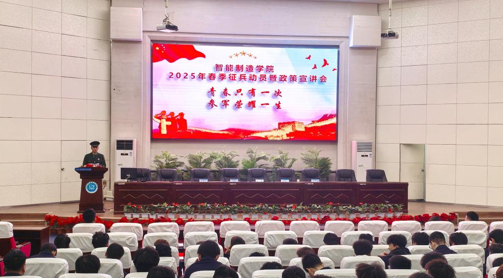近日,智能制造学院在学校图书馆5 楼智敏报告厅成功召开 2025 年春季征兵动员暨政策宣讲会。学院领导及全院师生参加了此次大会,旨在激发广大学生的参军热情,为国防建设贡献力量。
