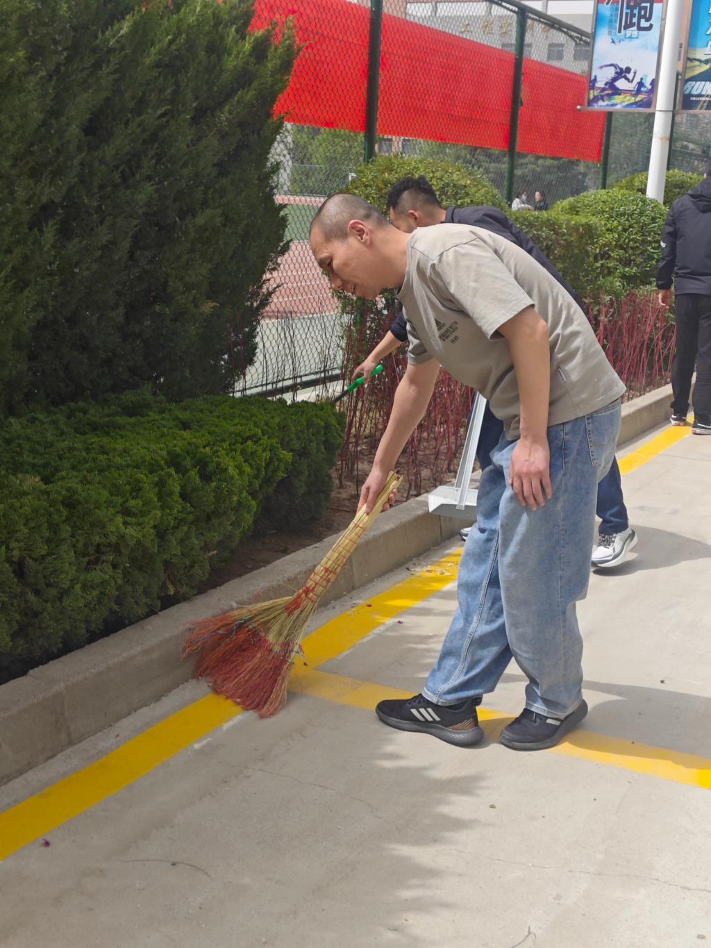 活动以学校田径场为中心,辐射周边道路区域,旨在通过师生的共同努力,打造一个宜学宜居的美丽校园。活动伊始,大家迅速领取工具,明确分工,以饱满的热情和昂扬的斗志投入到美丽校园建设工作中。在环境卫生维护现场,师生们手持扫帚、拉着垃圾桶等工具,对田径场及周边道路进行了全面清扫。他们不放过任何一个卫生死角,仔细清理着路面的落叶、纸屑和杂物。有的同学蹲下身子,用手将藏在绿化带里的烟头、塑料瓶一一捡起;有的老师挥舞着扫帚,将堆积的垃圾迅速归拢到一起。尽管汗水湿透了衣衫,但大家的脸上始终洋溢着灿烂的笑容,因为他们深知,自己的每一份付出都在为校园的整洁贡献力量。
