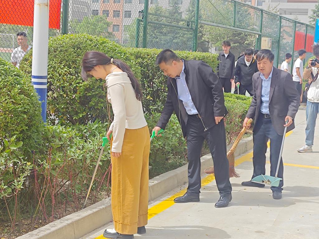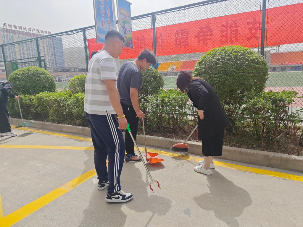 活动以学校田径场为中心,辐射周边道路区域,旨在通过师生的共同努力,打造一个宜学宜居的美丽校园。活动伊始,大家迅速领取工具,明确分工,以饱满的热情和昂扬的斗志投入到美丽校园建设工作中。在环境卫生维护现场,师生们手持扫帚、拉着垃圾桶等工具,对田径场及周边道路进行了全面清扫。他们不放过任何一个卫生死角,仔细清理着路面的落叶、纸屑和杂物。有的同学蹲下身子,用手将藏在绿化带里的烟头、塑料瓶一一捡起;有的老师挥舞着扫帚,将堆积的垃圾迅速归拢到一起。尽管汗水湿透了衣衫,但大家的脸上始终洋溢着灿烂的笑容,因为他们深知,自己的每一份付出都在为校园的整洁贡献力量。