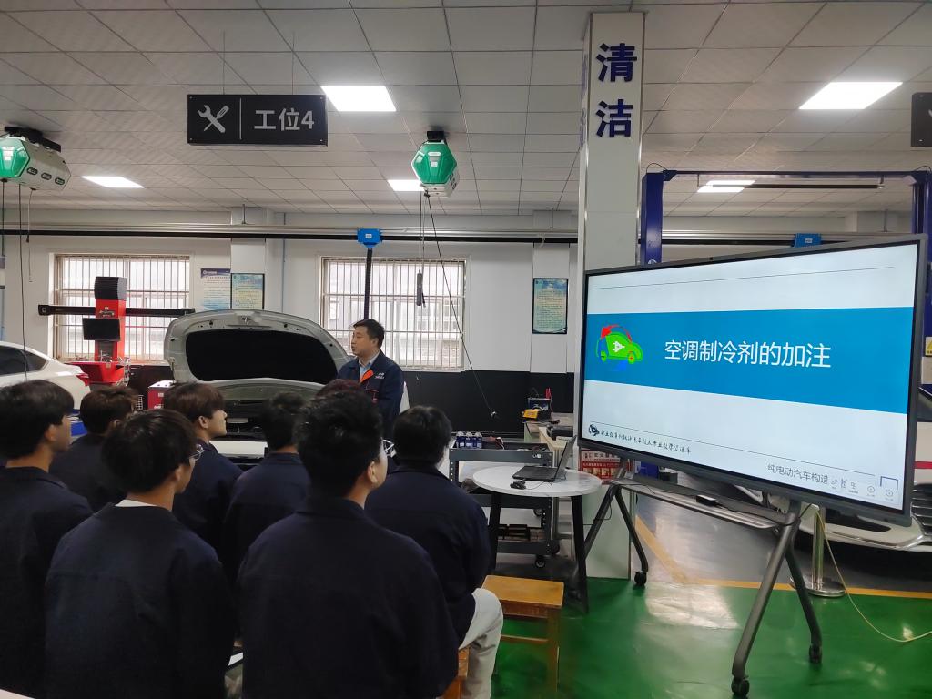 2024年9月13日下午15:00-16:00,智能制造学院于汽车工程实训中心组织开展了本学期第一次教师实践技能展示活动。此次活动由新能源汽车技术专业的豆建芳老师展示新能源汽车故障检修课程中的“空调制冷剂的加注”项目,学院全体教师和学生代表进行了观摩。