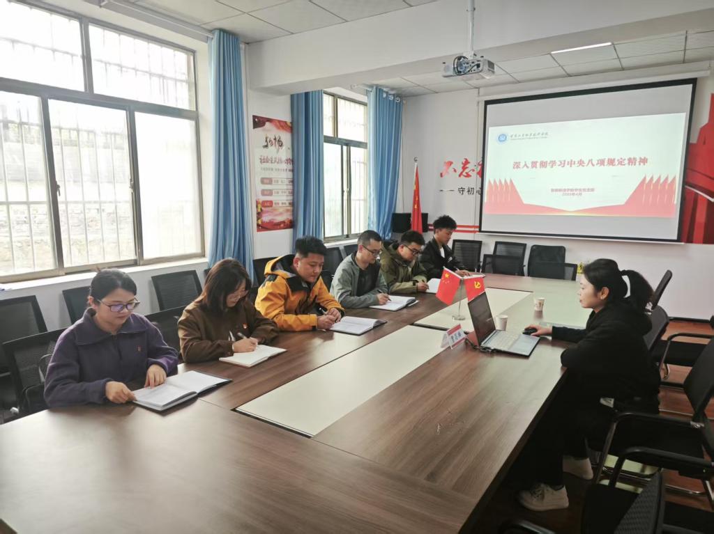 为深入贯彻落实中央八项规定精神学习教育,加强党风廉政建设,筑牢青年党员思想防线,4月8日下午,学生党支部在党员活动室组织开展了中央八项规定精神集中学习活动。学生党支部全体党员、预备党员及入党积极分子参加了此次学习。