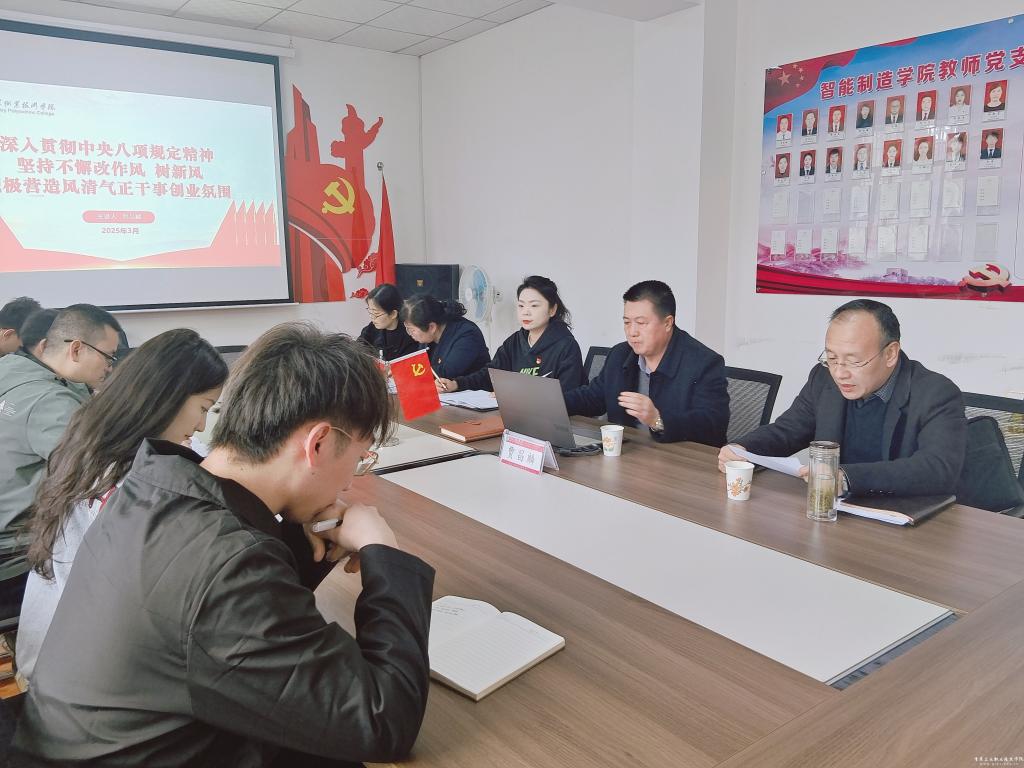 正值全校各级党组织和党员、干部扎实开展深入贯彻中央八项规定精神学习教育,3月31日下午,校纪委书记、监察专员贾昌麟在智能制造学院党员活动室,为智能制造学院全体党员带来一场以“深入贯彻中央八项规定精神 坚持不懈改作风树新风 积极营造风清气正的干事创业氛围”为主题的专题辅导讲座。