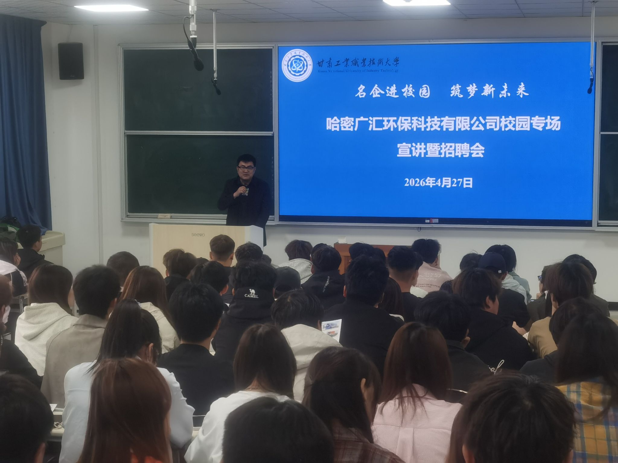 为扎实推进毕业生就业工作,拓宽学生就业渠道,搭建校企双向交流就业平台,2026年4月27日下午,哈密广汇环保科技有限公司莅临甘肃工业职业技术大学低空技术与工程学院开展2027届毕业生专场就业宣讲会,学院电气自动化技术专业共计108名学生参加本次宣讲。