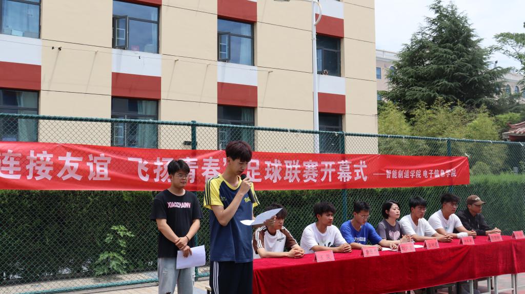 为了加强学院之间的交流与合作,培养团队合作精神,同时为学生提供一个展示自我、强健体魄、挥洒汗水的舞台。6月18日智能制造学院和电子信息学院在静雅楼前篮球场共同举办“连接友谊,飞扬青春”足球联赛开幕式。