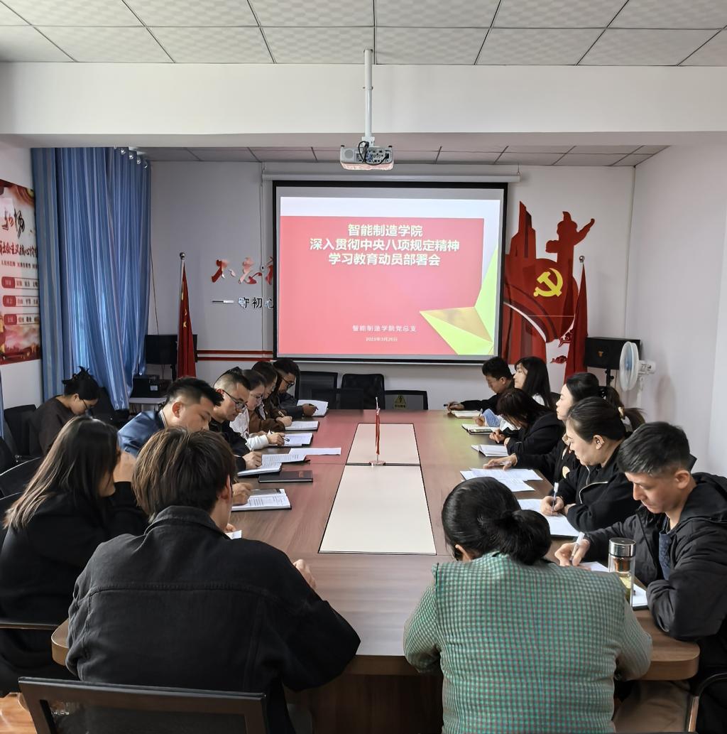 3月26日下午,智能制造学院党总支在学院党员活动室召开深入贯彻中央八项规定精神学习教育动员部署会,会议由学院党总支副书记李杨主持,全体教职工参加。