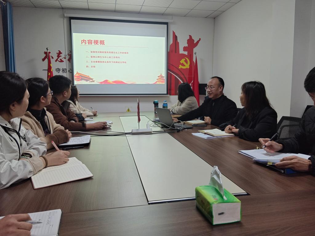 在如何筑牢阵地上,党课指出,一是要加强党对高校宣传思想文化工作的领导。定期组织师生学习党的理论和路线方针政策,通过“三会一课”、教职工大会、班会、团课等开展形式多样的文化活动,增强师生的文化自信和政治认同。二是要坚持以师生为中心的工作导向。学院的宣传平台要牢牢把握正确的政治方向和舆论导向,积极传播正能量,弘扬社会主义核心价值观,激发师生的爱校荣校情怀和为国家发展贡献力量的使命感。