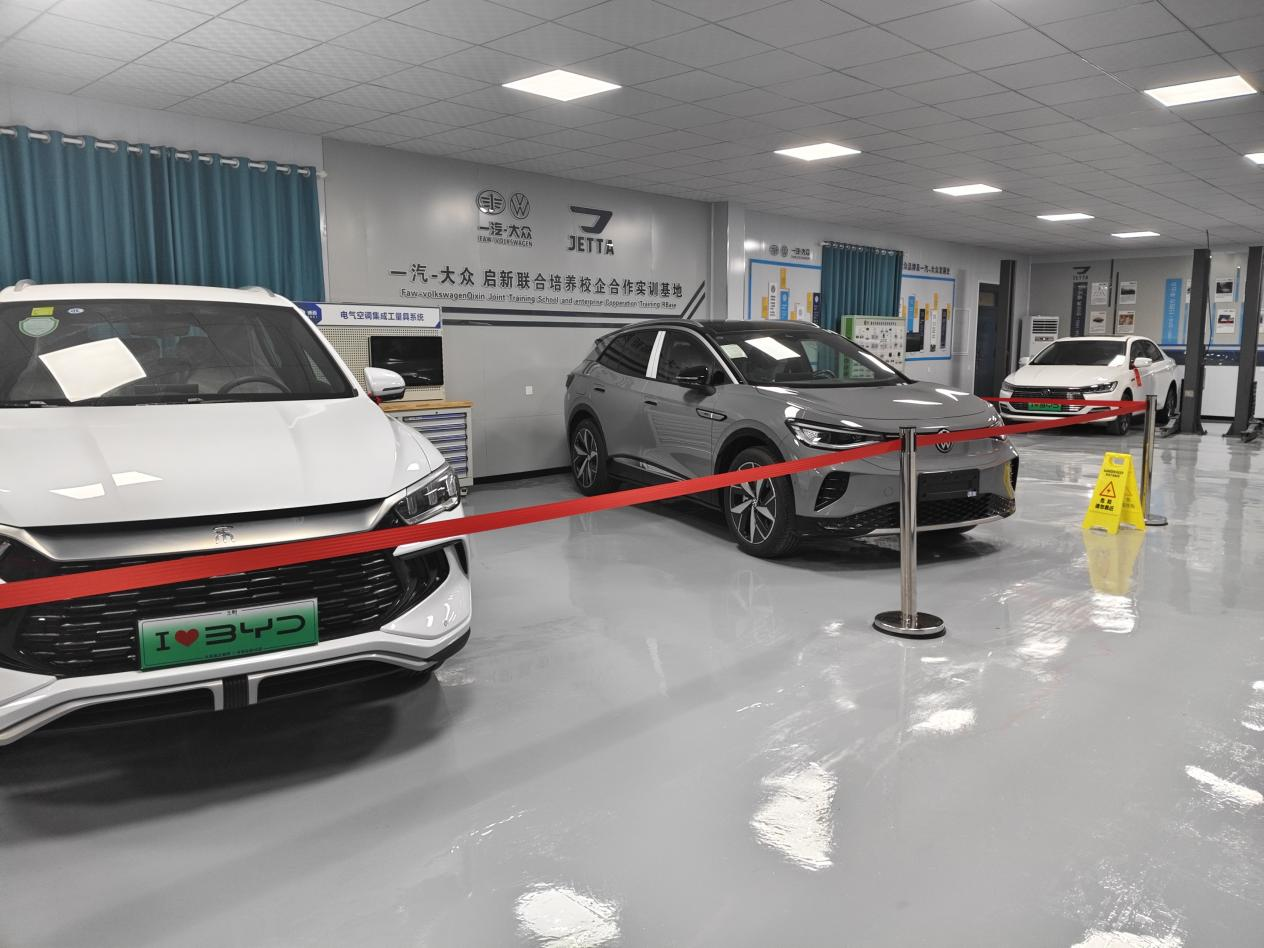 实训中心建筑面积达到300平方米,实训中心内部设备齐全,涵盖了新能源汽车技术的各个方面。主要包括动力充电实训区、整车实训区和理实一体化教学区。其中,动力充电实训区配备了纯电动车无刷直流电机解剖模型、交流异步电机解剖模型等多种电机解剖模型,以及车用直流电动机及控制技术实训台等设备;整车实训区则包括了比亚迪秦EV、比亚迪秦PLus、大众ID4纯电动汽车各系统的实际操作与故障诊断教学设备;理实一体化教学区则提供了丰富的多媒体教学设施,以辅助教学。此外,还有比亚迪宋Pro整车故障诊断系统、3.3KW国标充电桩等教学辅助设备。