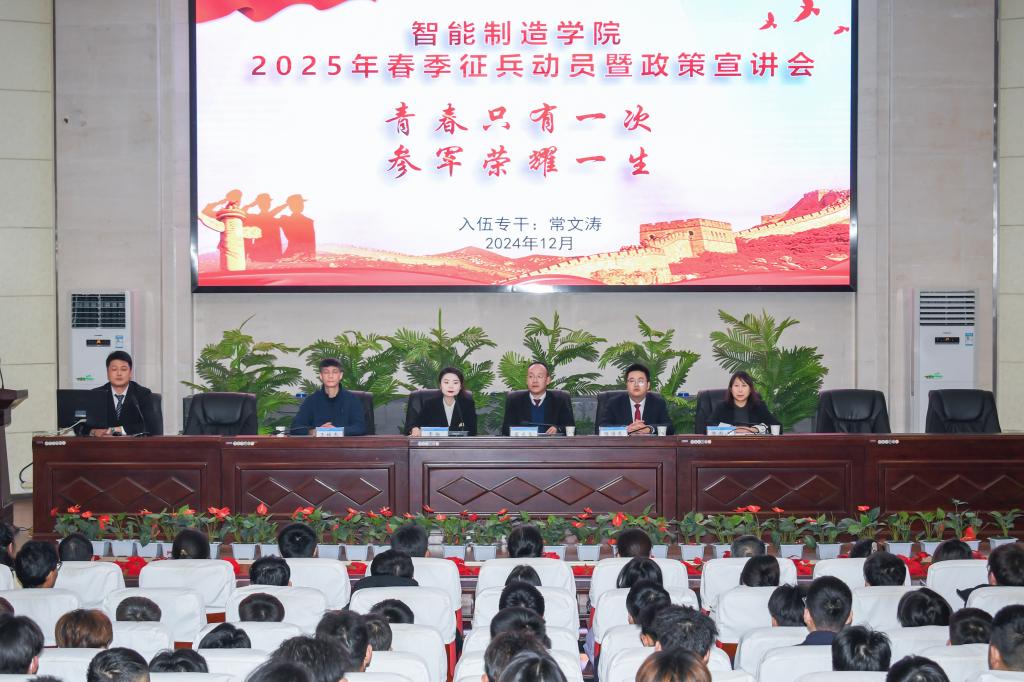 近日,智能制造学院在学校图书馆5 楼智敏报告厅成功召开 2025 年春季征兵动员暨政策宣讲会。学院领导及全院师生参加了此次大会,旨在激发广大学生的参军热情,为国防建设贡献力量。