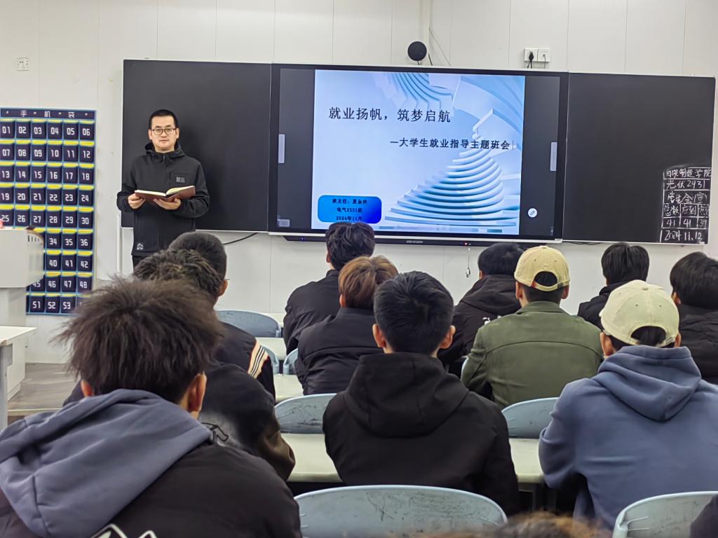 班会上,班主任详细介绍了当前就业市场的形势和各专业的发展趋势,引导同学们根据自身兴趣和专业特长,合理规划未来的职业发展路径。同学们积极参与讨论,分享了自己的就业期望和困惑。通过互动交流,大家不仅拓宽了就业视野,还学会了如何制定切实可行的就业计划。