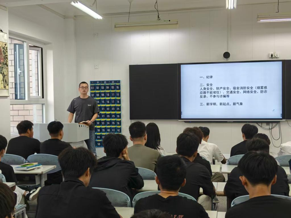 为增强安全防范意识,树立法制观念,8月24日,智能制造学院各班级班主任开展了“开学第一课”主题班会活动。班会重点围绕“校园安全”这一核心主题展开,从多个维度为同学们上了一堂生动而深刻的安全教育课。