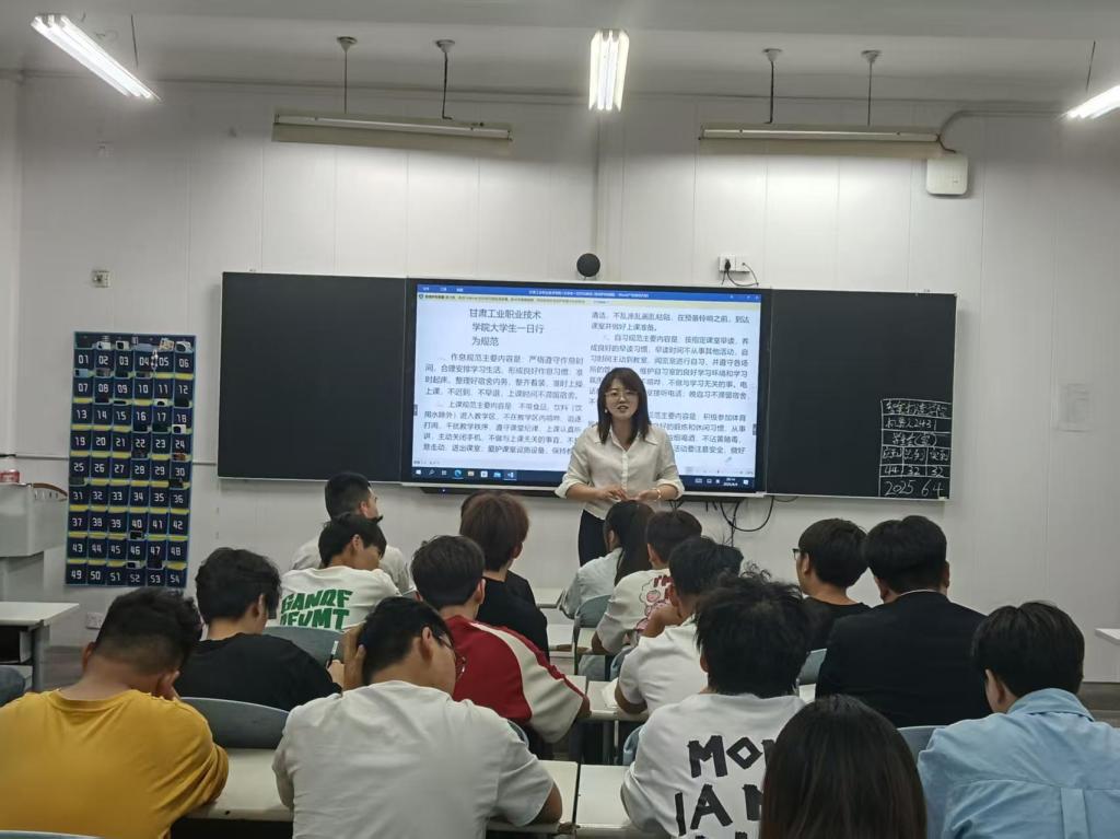 为强化学生行为养成,学院依托《甘肃工业职业技术学院大学生一日行为规范》,开展全员学习与践行活动。班主任逐条解读规范要求,从仪表着装、作息纪律到文明礼仪、社团参与,全方位引导学生将规范内化为行动自觉。活动中,班主任通过情景模拟、小组讨论等方式,帮助学生理解“得体仪表是尊重他人”“守时守信是责任担当”的深刻内涵,并鼓励学生积极参与体育锻炼与社团活动,在实践中提升综合素质。此次教育进一步推动了校园文明建设,助力学生成长为新时代青年。