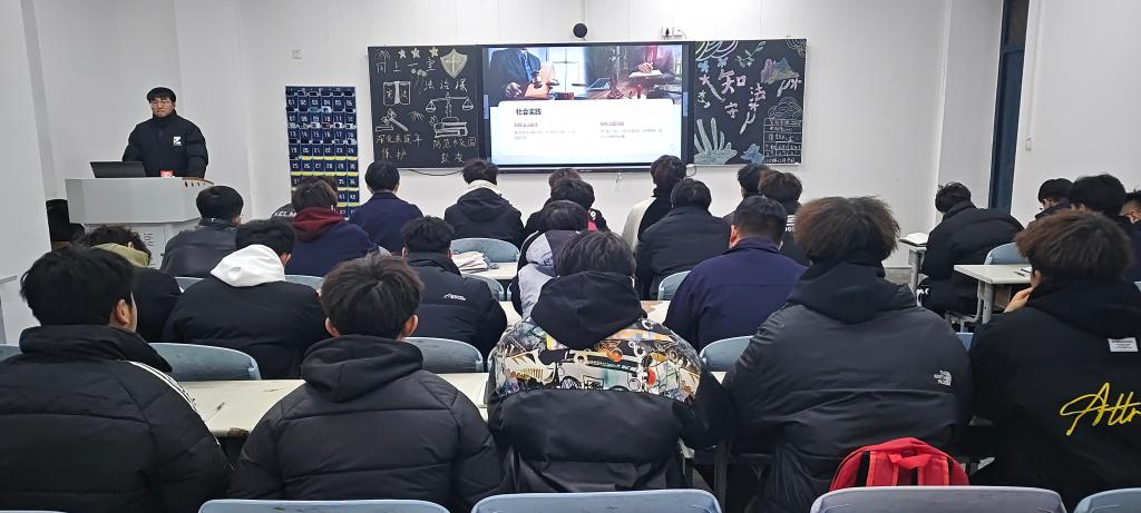 团支书通过PPT、讲解实际案例等形式,向同学们普及了宪法、民法典以及网络安全法等法律法规知识。其中,针对同学们在网络环境中可能面临的法律风险,如网络诈骗、个人信息泄露等内容进行了重点讲解,并结合真实案例分析,引导同学们树立网络安全意识,学会运用法律武器维护自身合法权益。同学们纷纷表示,此次团课内容丰富实用,不仅提升了自己的法律素养,也更加明确了在日常生活中尊法、学法、守法、用法的重要性。