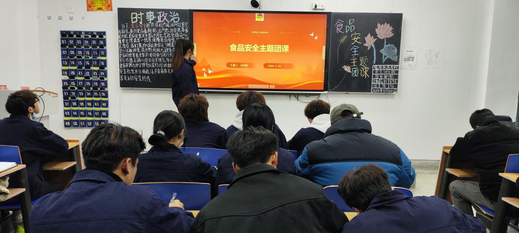 2024年11月24日,智能制造学院召开“食品安全”为主题的团课。此次团课旨在提高学生对食品安全问题的认识和重视程度,促进校园食品安全文化的建设。