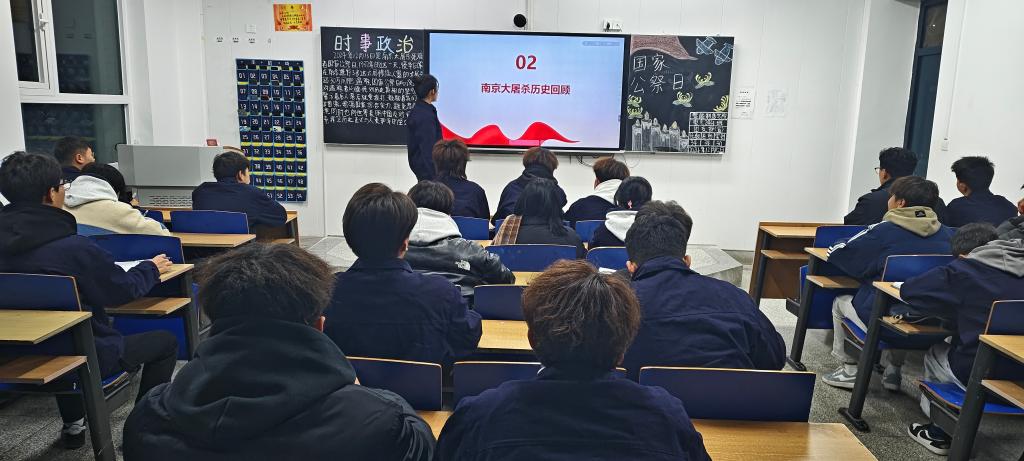 12月15日,"铭记历史,不忘国耻"为缅怀在惨绝人寰的南京大屠杀中遇难的同胞,智能制造学院开展以“国家公祭日”为主题的团课,加强青年学生的爱国主义教育,揭露南京大屠杀的历史真相、战争灾难的反思、厚植爱国主义情怀和构建民族共同体意识。