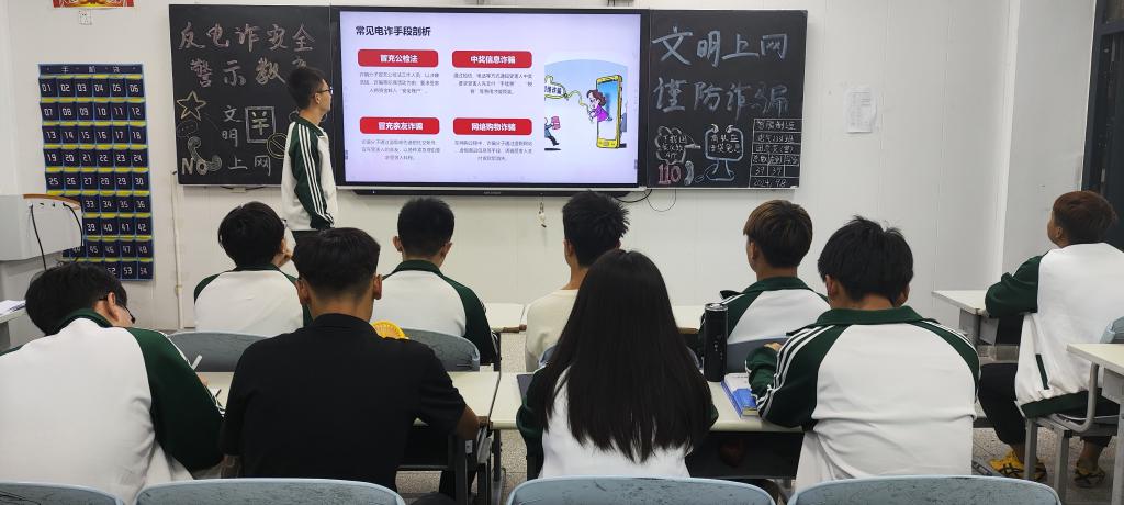 为了加强我校师生对电信网络诈骗的防范意识,提高学生防诈骗的识别和应对能力,智能制造学院于9月8日召开“反电诈安全警示教育”主题团课,23级全体同学参加。