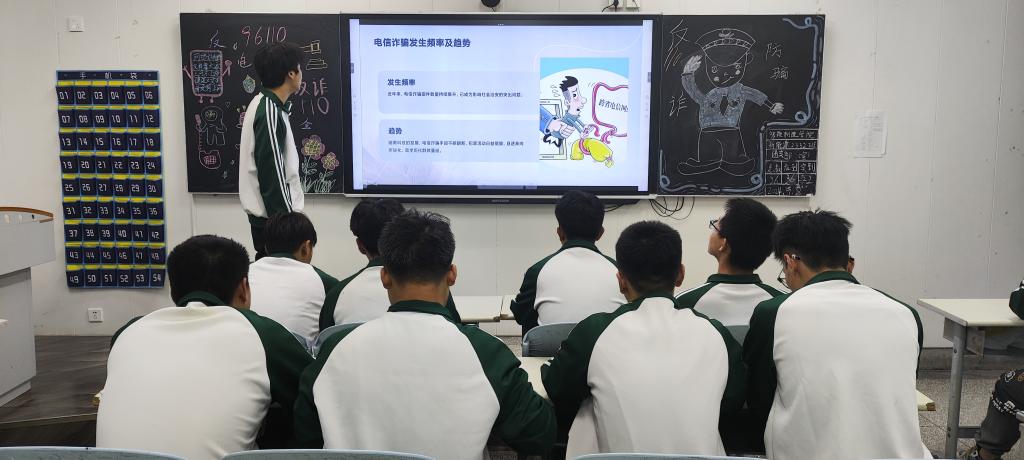 首先,全体学生共同观看了一部反电诈警示教育片。该片通过真实的案例和生动的画面,展示了电信网络诈骗的多样性和隐蔽性,让同学们对诈骗手段有了更深入地了解,进一步深化了对反诈工作的认识。团支书结合当前电信网络诈骗的新形势和新特点,详细讲解了如何识别和防范各类诈骗手段,并传授了一些实用的防骗技巧。在互动环节,同学们积极分享了自己或身边人遭遇的诈骗经历,这些真实的案例让大家深刻认识到电信网络诈骗的普遍性和危害性,进一步提升了大家的警惕意识。