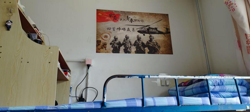 这里住着一群曾身着戎装、保家卫国的青年,他们将军人的优良品质融入宿舍生活的点点滴滴。走进宿舍,首先映入眼帘的是摆放整齐的被子,每一个被子都如同豆腐块般棱角分明,那是他们纪律与坚韧的象征。床边的军靴擦得锃亮,仿佛时刻准备着再次踏上保卫国家的征程。这个宿舍是退役大学生们在校园里的温暖港湾,更是他们传承军人精神的阵地。每一次的交流与分享,每一个帮助与鼓励的瞬间,都在这个宿舍里得到了最真挚的体现。这里见证着他们从军人到学生的转变,见证着他们在校园中继续发光发热,续写属于他们的辉煌篇章。