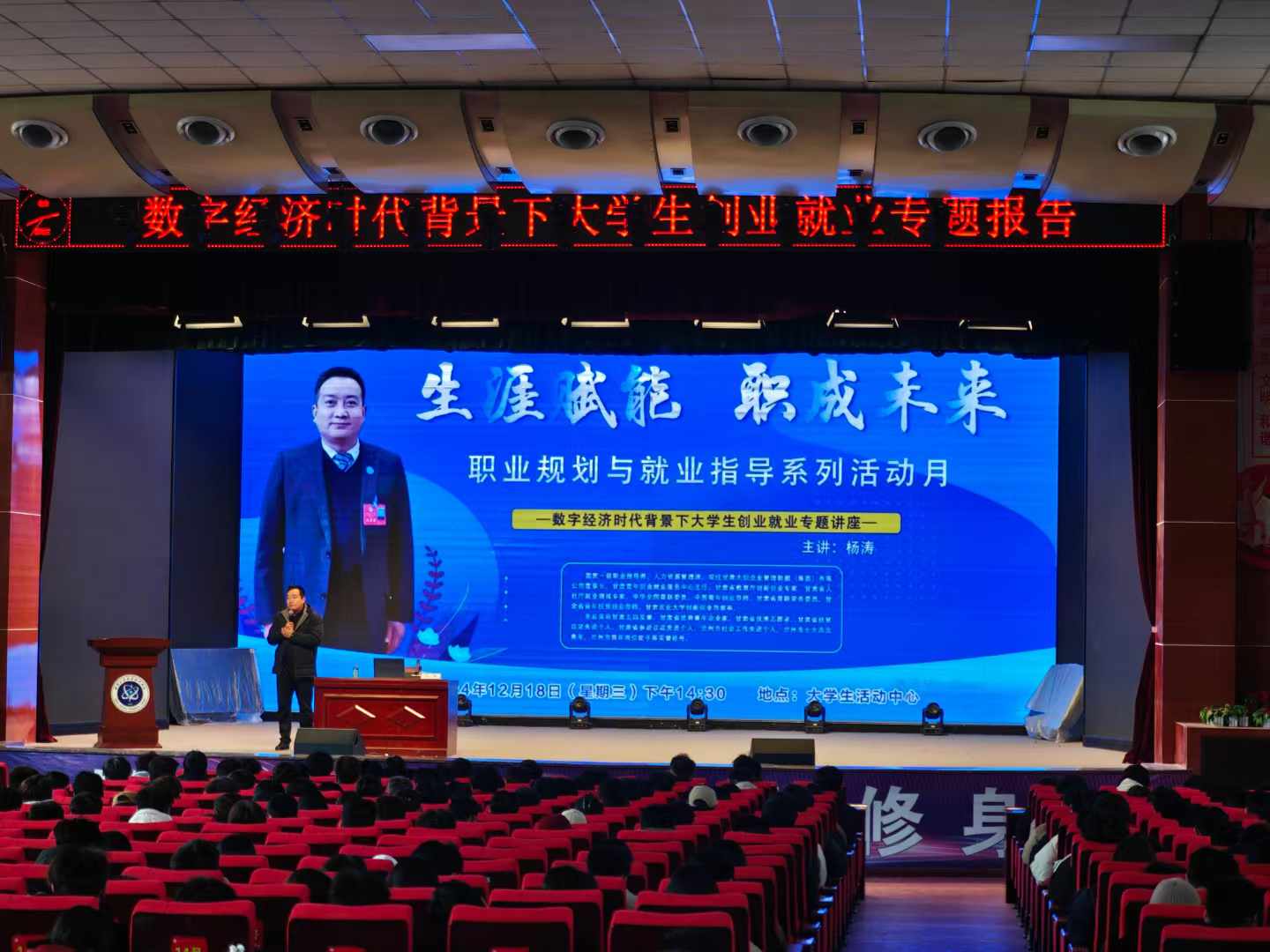 为了引导广大学生树立正确的就业观,积极应对在数字经济时代背景下就业的挑战与机遇。智能制造学院于12月18日参会“数字经济时代背景下大学生创业就业”专题讲座,23、24级同学参加。