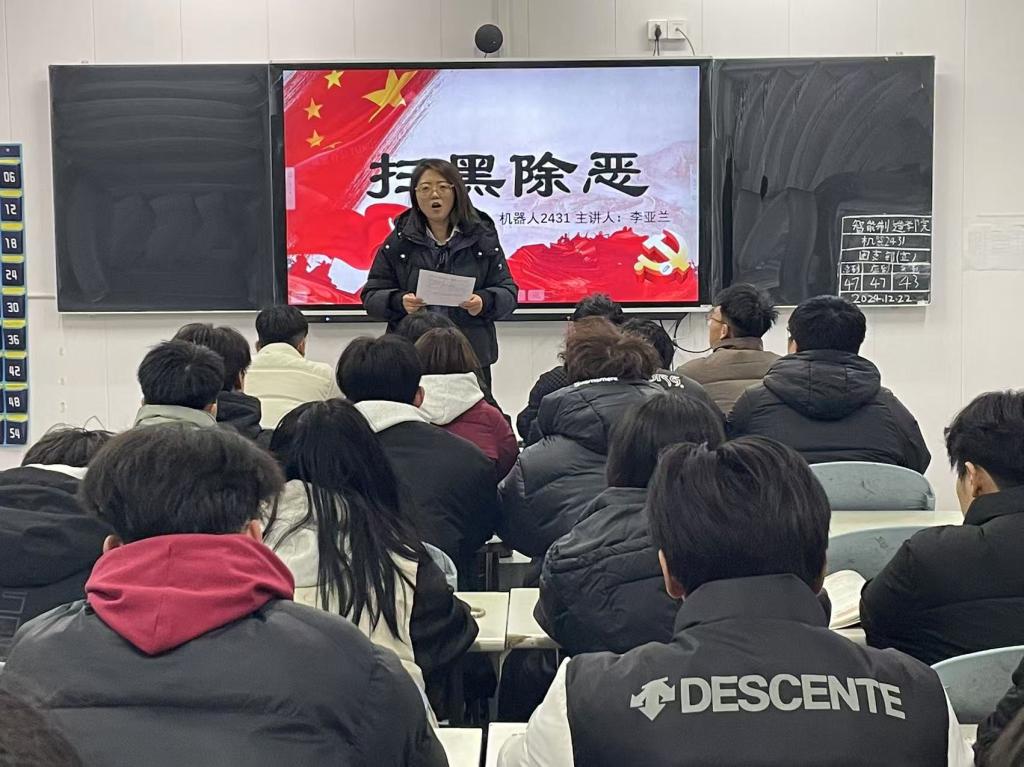 为平安和谐的校园环境,12月8日,智能制造学院开展“扫黑除恶“主题宣传教育活动。活动旨在引导同学们自觉遵守法律法规,培养同学们的法治观念和社会责任感。