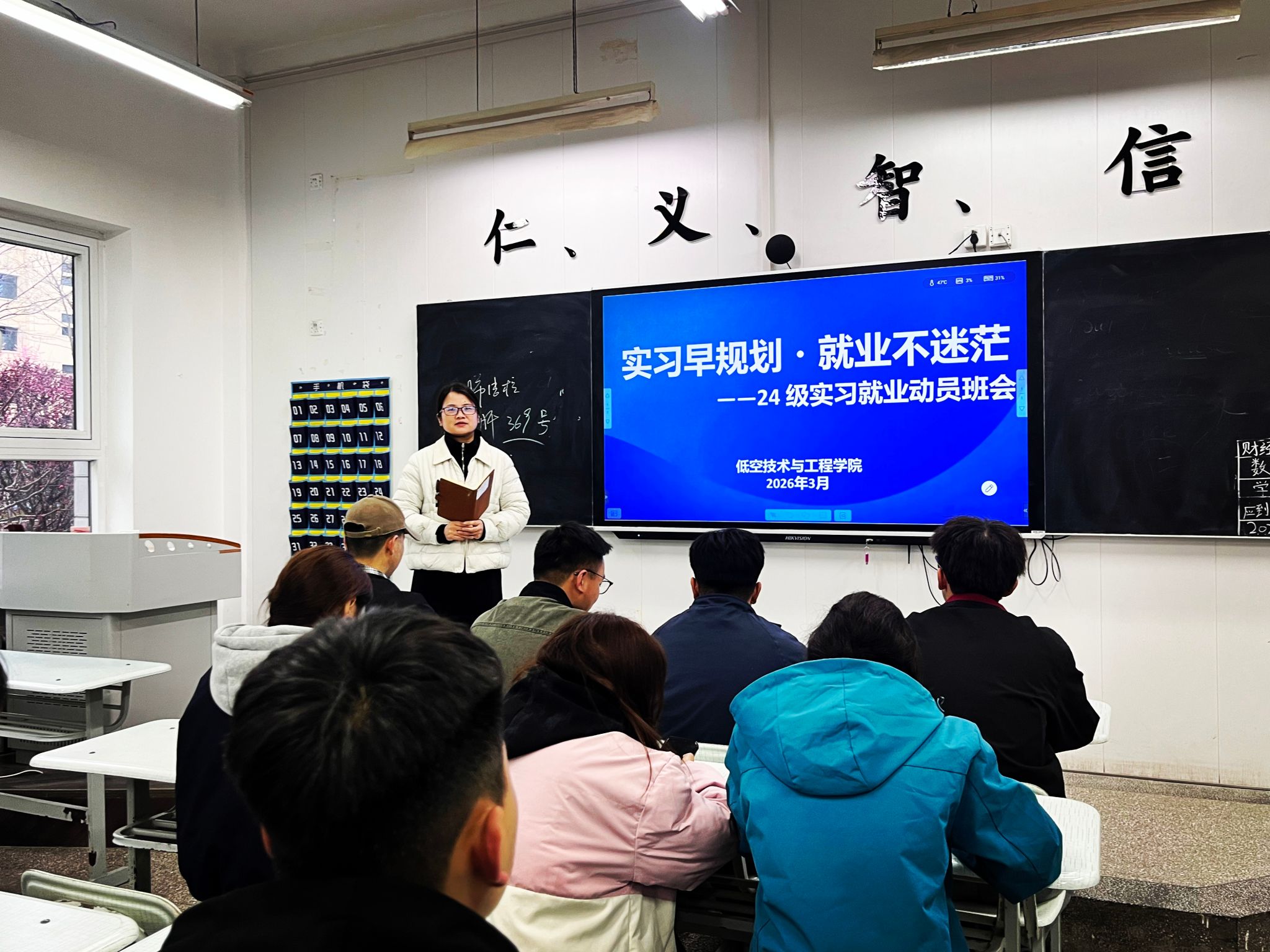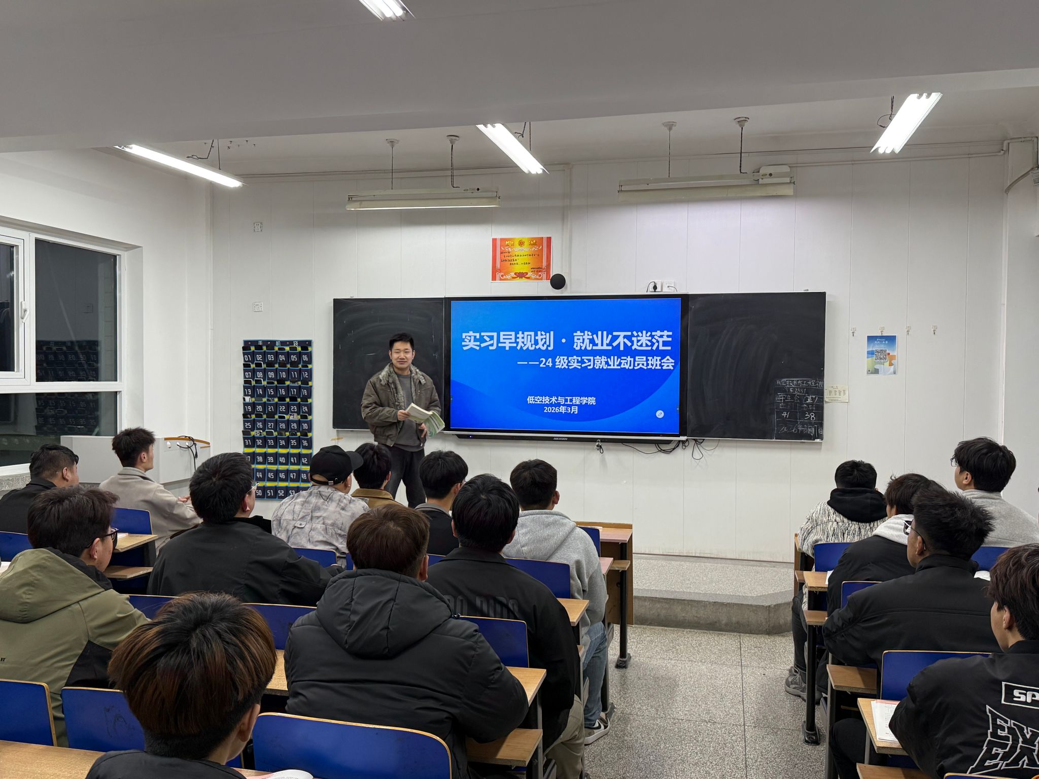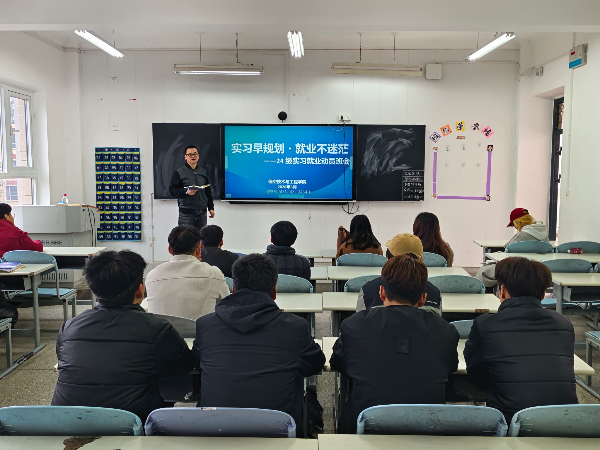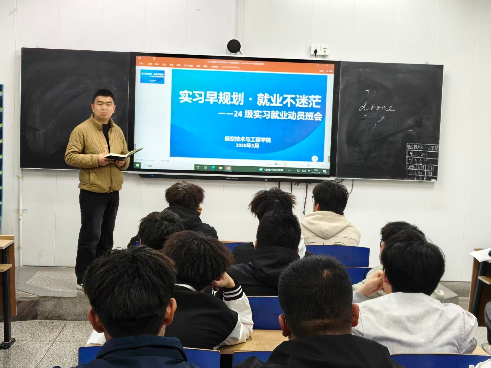 为深入落实高校立德树人根本任务,帮助24级新生提前树立职业规划意识,理清实习与就业发展思路,筑牢学业与职业衔接的坚实基础,3月12日,低空技术与工程学院精心组织开展“实习早规划・就业不迷茫”主题实习就业动员班会,为同学们量身打造了一场针对性强、实用性高的职业启蒙课堂。