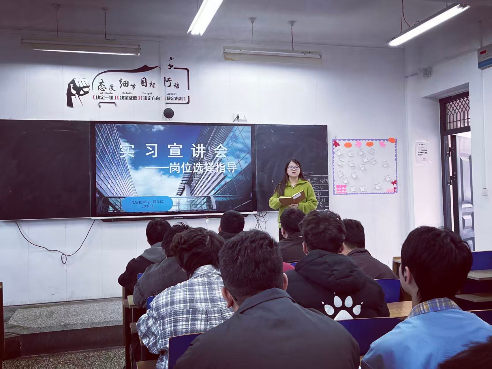 为帮助24级学子明晰低空技术行业实习就业方向,科学规划实习岗位选择,提升实习求职的针对性与有效性,2026年4月,低空技术与工程学院精心组织开展实习岗位选择指导主题宣讲会,为即将进入实习阶段的同学们答疑解惑、指引方向,24级全体学生参与本次宣讲会。